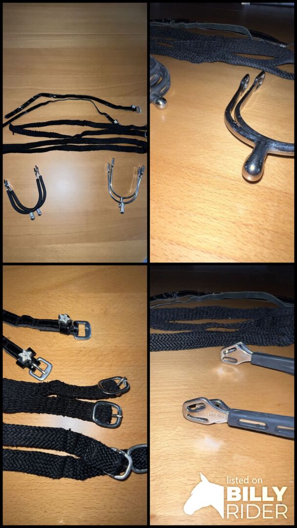 Hey, ich biete hier 2 Paar Sporen an, die gerne zusammen, aber auch einzeln gekauft werden können. Dazu habe ich noch 3 Paar Sporen-Riemchen, die gerne dazu genommen werden können. Ein Paar der Riemchen ist aus Lack und mit einem glitzernden Stern versehen (siehe Bilder). Die Sprenger-Sporen haben ein kugelförmiges Ende(1,8cm lang) und die NoName-Sporen haben ein tropfenförmiges Ende(ca. 2,4cm lang). Bei Interesse gerne melden, Abholung möglich:)