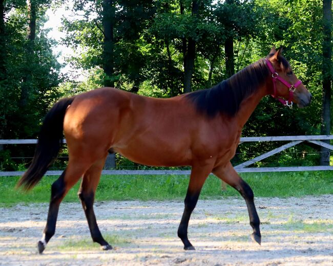 CC Electric Highlight ist ein bildhübscher Quarter Horse Wallach, geboren am 07.04.2023. Er ist bayfarben und wird voraussichtlich ein Endmaß von etwa 153 cm erreichen. Als 1a Prämienfohlen überzeugt er durch sein sehr korrektes Gebäude, seine kräftige Bemuskelung und äußerst vielversprechende Proportionen. Der Wallach ist rundum gesund und genetisch getestet (5-Panel, PSSM 2 sowie IMM n/n). Er wächst artgerecht im Herdenverband mit Gleichaltrigen auf und kennt sowohl Tierarzt als auch Hufschmied. Bei Abgabe ist er regelmäßig geimpft und entwurmt. CC Electric Highlight besitzt einen ausgesprochen lieben und menschenbezogenen Charakter. Er zeigt sich aufgeschlossen, nervenstark und brav im täglichen Umgang. Durch seine Lernwilligkeit und seine tägliche Handhabung ist er gut vorbereitet und kennt das komplette Fohlen-ABC, inklusive sicherem Halfterführen. Wäre jetzt bereit in die Ausbildung zu gehen. Er zeigt gute, korrekte Bewegungen und stammt aus einer erstklassigen Reining- und Cutting-Abstammung (Jacs Electric Spark x High Brow Cat). Damit verspricht er, ein äußerst interessantes und hochwertiges Prospekt für den Showeinsatz zu werden.