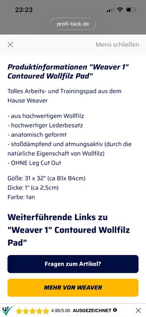 Leider passt das Pad nicht optimal zwischen den maßgeschneiderten Sattel und die Schulter meines Quarters.