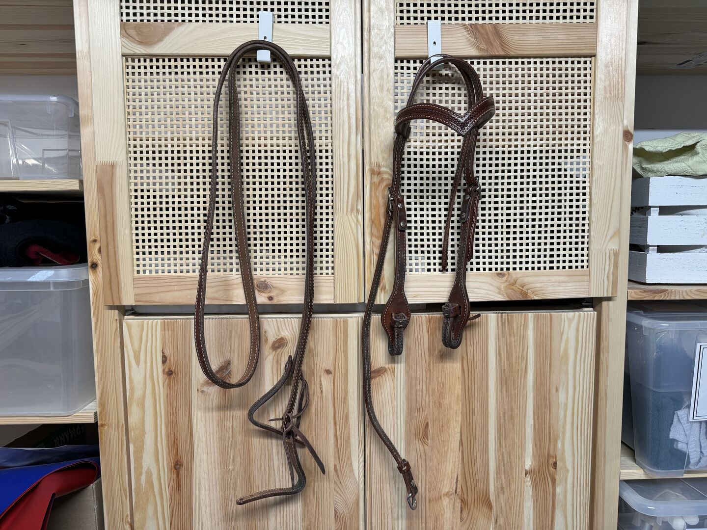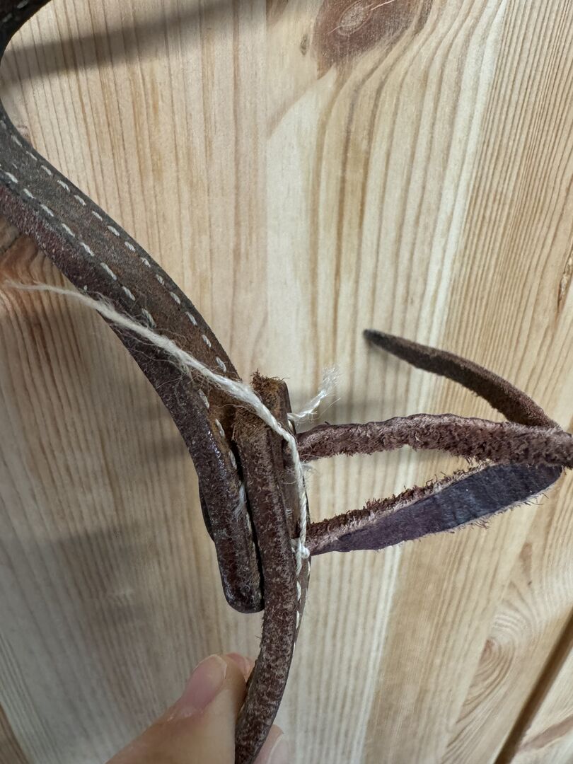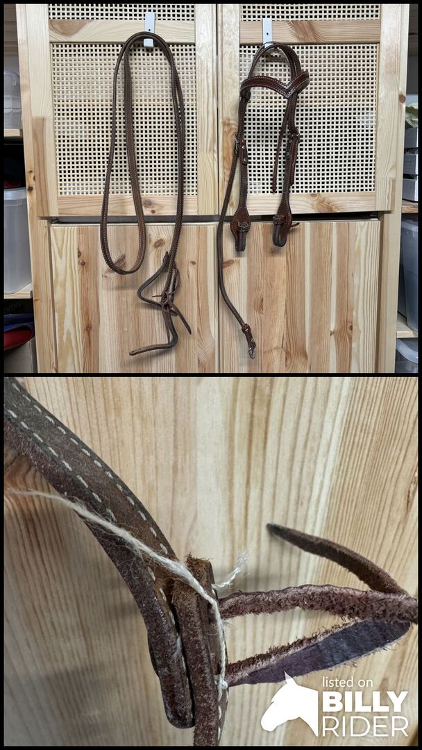 Braunes Western-Lederhalfter mit Verzierung, Zügel sind an einer Seite angerissen, können aber ohne Probleme benutzt werden Gegen übernahme der Versandkosten zu verschenken