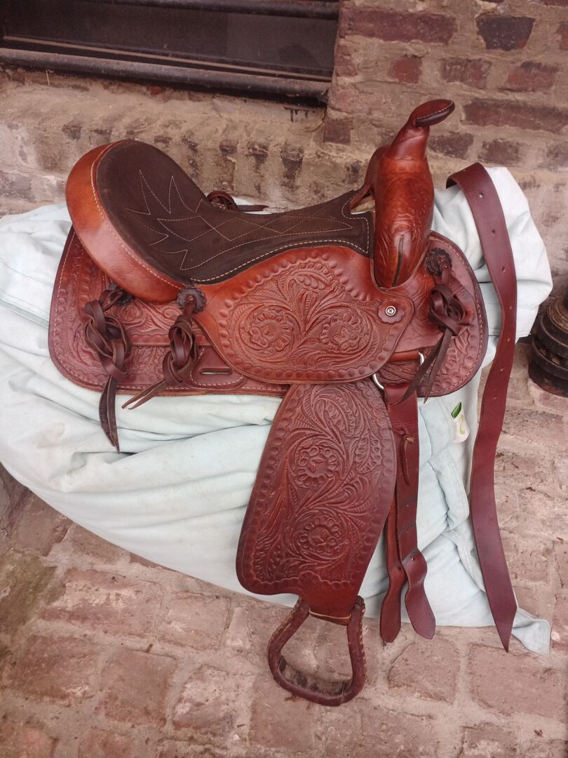 Westernsattel zum Kauf an. Zuvor lag er auf einem großen Tinker.