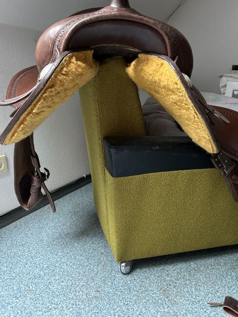 Verkaufe meinen schönen dunkelbraunen Westernsattel von Deuber. Sitzgr. 15.5. Für etwas breitere Pferde