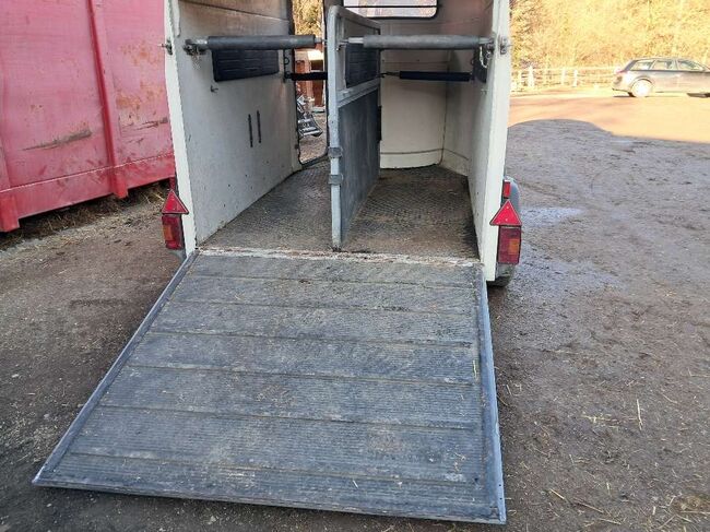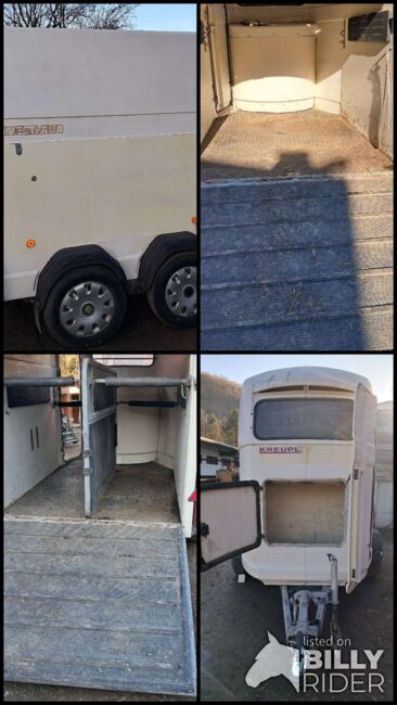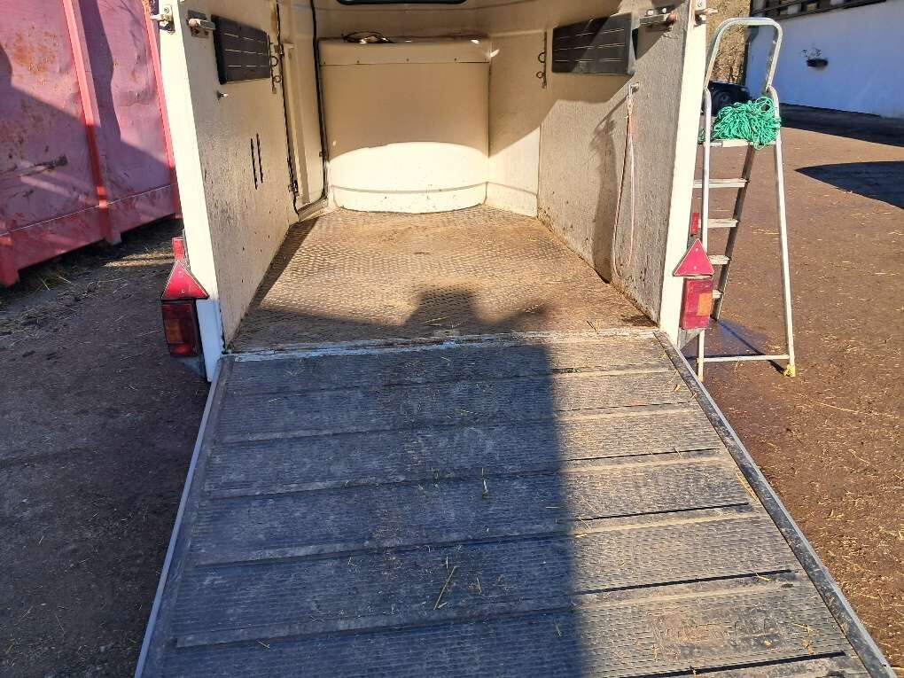 Wegen Neuanschaffung zu verkaufen: Polyanhänger Westfalia Jupiter weiß für zwei Pferde helller, freundlicher Innenraum, meine Tiere sind daher sehr leicht eingestiegen. Sehr laufruhig und spurtreu, original Westfalia Fahrwerk robuste Trennwand, vollständig herausnehmbar oder zum schrägstellen Seitenpolster (auch an der Trennwand) und gepolsterte Stangen vorne und hinten Sattelkammer mit extra Frontzugang, mannshohe Servicetür links vorne Gummiboden mit Struktur verklebt, Einstiegsrampe mit Gummi und Trittleisten erneuert: Boden (komplett), D-Kupplung, Abreiss-Sicherungsseil und Reifen 2020, Stoßdämpfer und Bremsseil 2023. EZ 08/2001; Eigengewicht 870kg, höchstzulässiges Gesamtgewicht: 2000kg