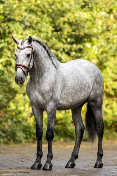 Ebenfalls ist er sehr neugierig, lieb und höflich, sodass der Umgang mit ihm einfach Spaß bringt. Er ist 7 Jahre alt und aktuell 1,65 m groß. Er ist basic geritten, sowohl auf dem Platz, als auch im Gelände, was er auch super lieb mitmacht. In Zukunft können wir ihn uns in vielen Bereichen vorstellen, sowohl in der Dressur, für Working-Equitation, für die Show oder einfach als Freizeitpartner.