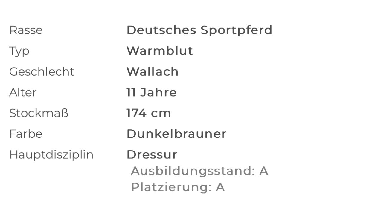 Zum Verkauf steht dieser 11 jährige Wallach. Er ist 174 groß und mit 3 guten GGA ausgestattet. Er weiß durch seine sympathische Art jeden Tag zu begeistern und ist absolut brav und unkompliziert. Er ist auf Turnieren bis A platziert und ist brav im Gelände. Er kennt täglichen Auslauf und Herdenverband. Er läuft barhuf. Ich kann mir Scooby sehr gut als Familienpferd vorstellen, er liebt es betüddelt zu werden und im Mittelpunkt zu stehen.