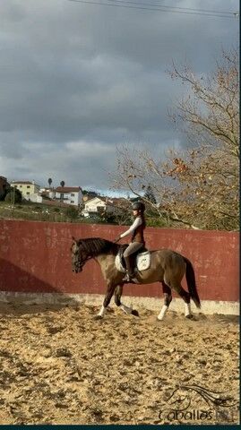 Er arbeitet sehr gerne und ist ganz easy. Er hat drei sehr gute GGA und wäre sehr gut geeignet für die Dressur aber auch Working Equitation.