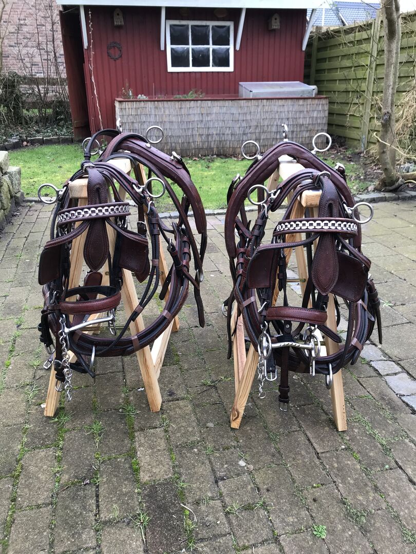 Ein wenig gebrauchtes Zweispännergeschirr in dunkelbraun mit Kopfstücken Gebissen und Leine für Ponys große Shettys bis kleine WelshB. TEL:04683 519