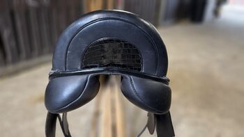 Hallo, Ich verkaufe hier meinen Dresch Dressursattel. Monoblatt mit Aufbaupausche. Schwarz, mit schwarzem Lack und Swarovskisteinen am Himmel.