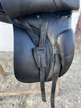 Gut erhaltener, aber schon etwas älter, sehr bequemer Schumacher Dressur Sattel. Inklusive Steigbügelriemen mit Steigbügel von Sprenger Die Strümpf