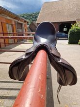 Dressur von Prestige mit der X Technologie, Modell Helen. 18 Sitzfläche, Kammerweite 33, doubliert mit Klettpauschen. Der Sattel befindet sich in ei